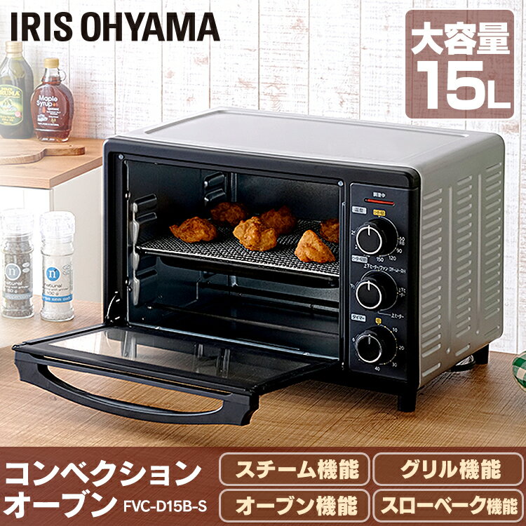 【10%OFFクーポン配布中】コンベクションオーブン FVC-D15B-S アイリスオーヤマ 送料無料 オーブントースター ノンフライヤー 家庭用 スチーム 蒸し料理 スチームオーブントースター ノンフライ調理 トースト 揚げ物 キッチン シルバー あす楽対応iriscoupon