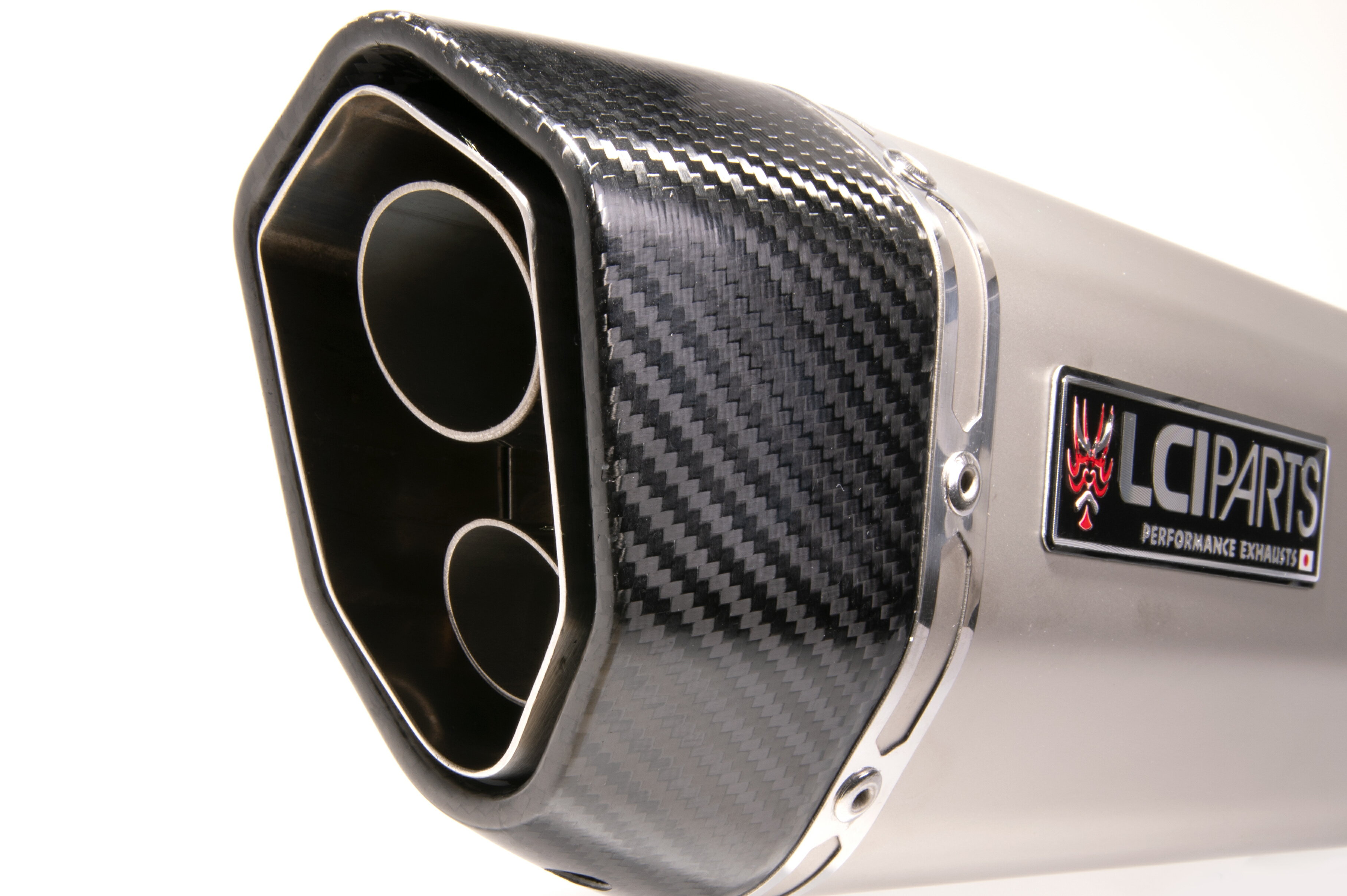 《サイレンサー寸法》シェイプサイズ : 六角形 縦130mm x 横100mmインナーパンチング内径:50mmアウターシェル長 :300mm本体全長 :460mm1本あたりサイレンサー本体重量: 2.6kg (バッフル含まない)バッフル重量:130g《セット内容》・マフラー本体(シェル:ステンレス(チタンコートブラスト仕上げ) 構造部・インナーパンチング:ステンレスSUS304 エンドキャップ:ドライカーボン)・サイレンサーバンド(ステンレスSUS304)・専用中間パイプ(ステンレスSUS304)・取付にかかわる部品一式 バンド一式・脱着式消音バッフル(ステンレスSUS304)・耐熱アルミステッカーLCIPARTSエンブレム ※サイレンサーにエンブレムが貼っていない状態で発送します【注意事項】-共通文-・ 共通説明書は付属しておりますが、車種専用の説明書はございません。