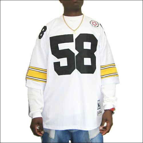 ■BRAND: mitchell & ness【ミチェルアンドネッス】 ■TEAM/PLAYER: #58【JACK LAMBERT】 ■QUALITY: ポリエステル100% ■COLOR: ブラック・ホワイト ■SIZE: *48[M] 身幅:57 着丈:74 袖丈:25 肩幅:61 *50[L] 身幅:63 着丈:80 袖丈:28 肩幅:67 *52[XL] 身幅:65 着丈:81 袖丈:31 肩幅:68 *54[2XL] 身幅:72 着丈:85 袖丈:29 肩幅:73 *56[3XL] 身幅:76 着丈:87 袖丈:29 肩幅:78 *60[5XL] 身幅:78 着丈:90 袖丈:30 肩幅:81 ※58(4XL)は、メーカーで作っておりません。